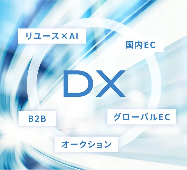 オークションプラットフォーム、EC、B2Bサービス。これらをAIやDXでつなぎ、誰もがスムーズに売り買いできる仕組みを拡大しています。